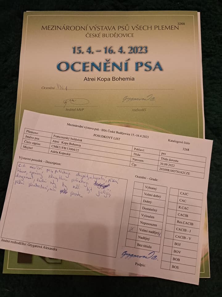 4.11.2023 Mezinárodní výstava psů(CACIB) Poznaň Třída mladých V4/7 Rozhodčí: Chantal van Raamsdonk-Blatter(BE)